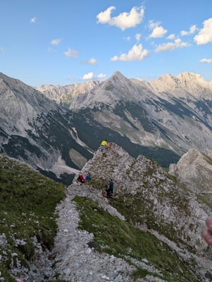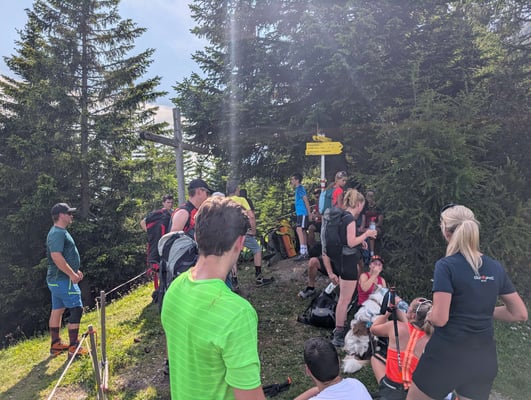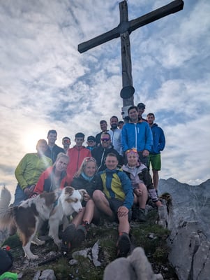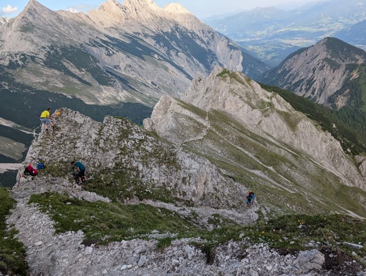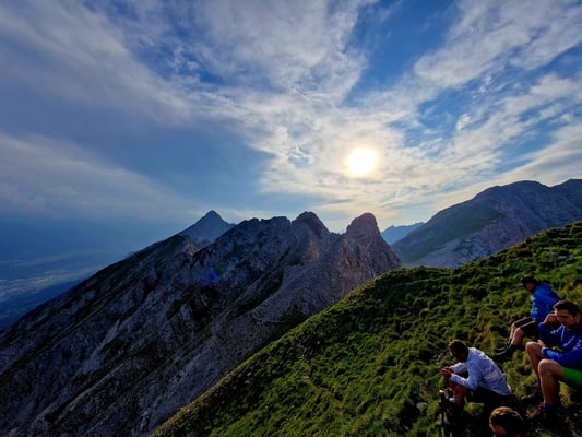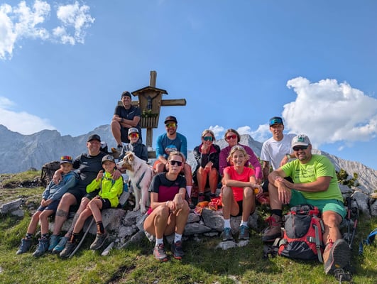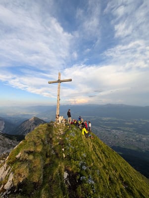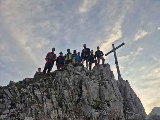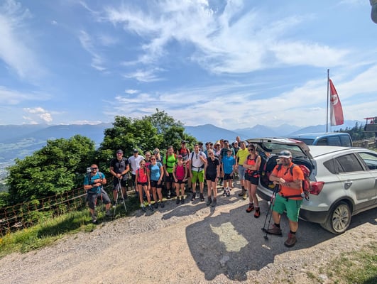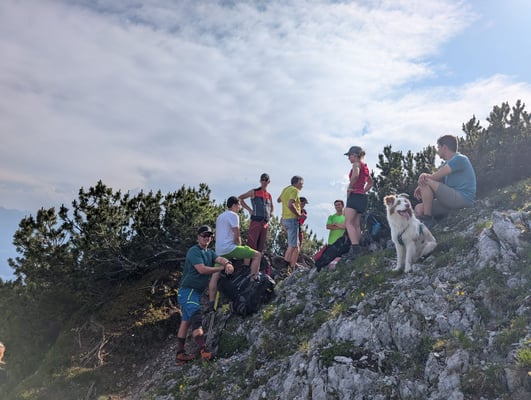 Ausgangspunkt war die Thaurer Alm, von wo aus sich die motivierte Truppe von 30 Leuten auf den Weg Richtung Wildanger machte. Dort teilte sich die Gruppe auf: Ein Teil stieg weiter auf zur Lattenspitz, während sich der abgehärtete Kern noch den zusätzlichen Anstieg zur Pfeiserspitze und Thaurer Jochspitze vornahm.