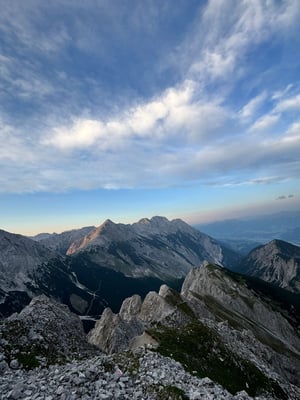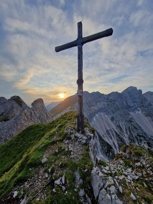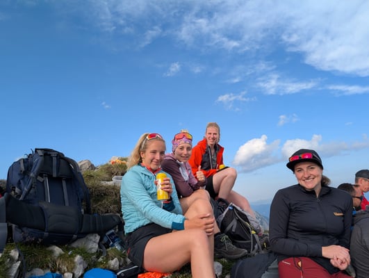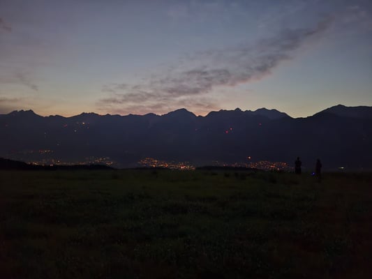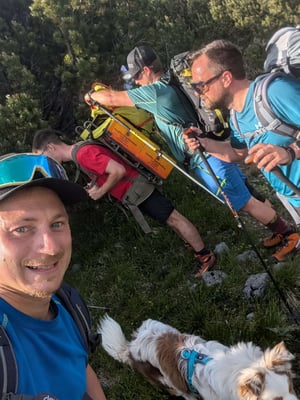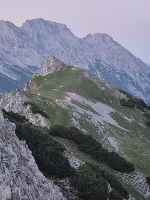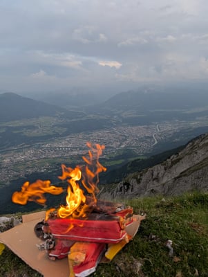 Mit dabei im Gepäck: einiges an Brennmaterial ca.150 Golden Flames– sowie eine kräftige Jause zur Stärkung zwischendurch. Der Aufstieg bei bestem Sommerwetter war schweißtreibend, aber die Vorfreude auf das abendliche Feuer und das beeindruckende Panorama machten jeden Höhenmeter lohnenswert.