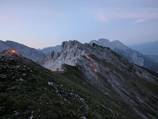 Pünktlich zum Sonnenuntergang wurden die Feuerstellen entzündet und setzten ein weithin sichtbares Zeichen zur Sommersondenwende. Die leuchtenden Flammen auf der Thaurer Bergkette erinnerten einmal mehr an den Sinn der Sonnwendfeuer – als Symbol für Licht, Gemeinschaft und den Lauf der Jahreszeiten.